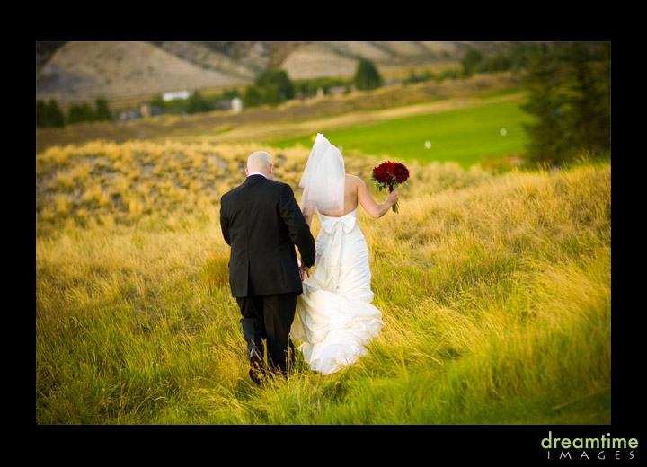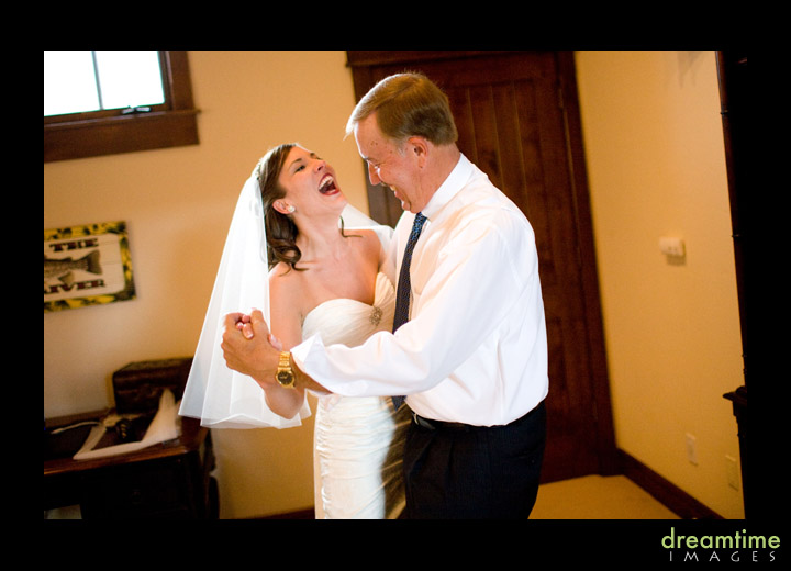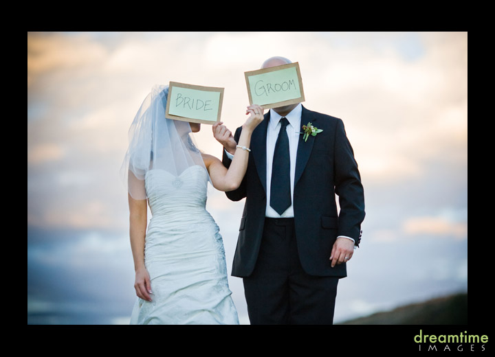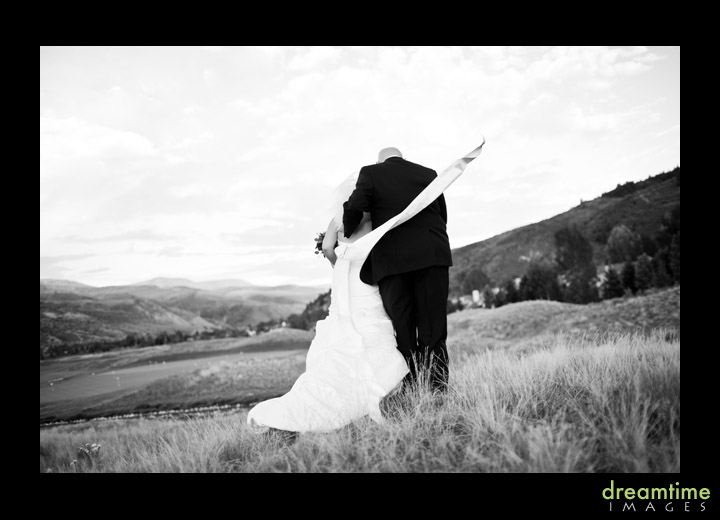 As Gina was getting ready, we started talking about what her and Brad do on vacations, and somehow the conversation turned into what they take pictures of on vacations: lots of signs. Pretty cool. So I decided that we needed to make some signs and take some goofy portraits with them. So her dad chopped up a beer box and made some classy Bride and Groom signs, which we whipped out during a short couples portrait session on the Arrowhead Golf Course in Beaver Creek. It was hilarious! We even managed to pull off a great American Gothic replica in the mountains of Colorado.