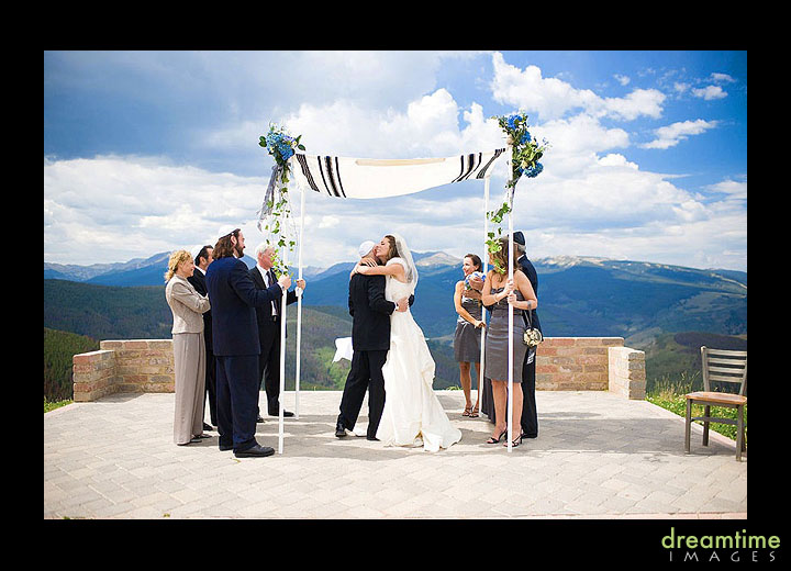 One, in the Ceremony category, was for this shot from Heather and Todd’s Vail wedding. They were married at the top of the mountain on the wedding deck. A storm was brewing all morning and things looked a little ominous, but they decided to go for it and risk the rain. The sun was fighting its way through the clouds for the whole ceremony, and as soon as they were pronounced husband and wife, the sun broke through and splashed them with a crazy ray of light. Everyone was talking about it afterward. The judges wrote, “A fantastic, intense moment enhanced by the incredible light and landscape. A painting.”