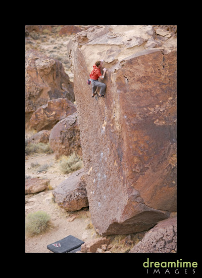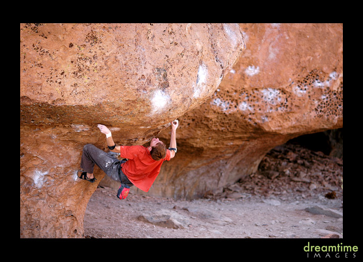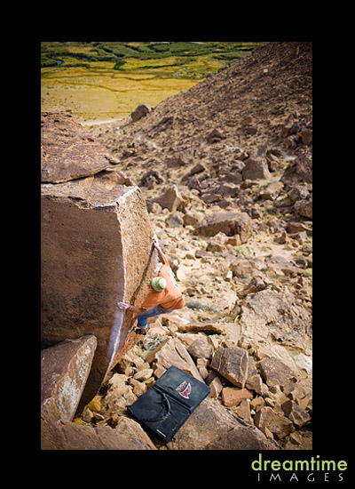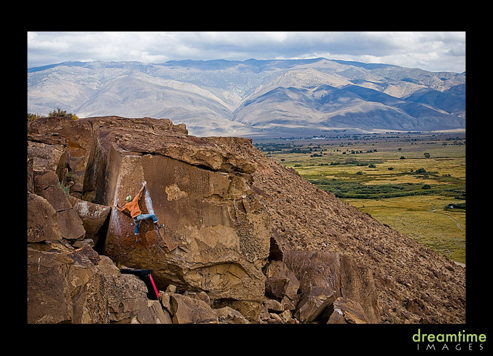 Awesome! I’m shooting an absolutely killer wedding later today in the Eastern Sierra Nevada mountains at this place called Convict Lake, which is just down the road from Mammoth. I flew in a few days ago and have been hanging out with some Norwegians we met in New Zealand, who are wrapping up a year-long jaunt through Thailand, the South Pacific, Canada and America. For the last few days we’ve been waking up, sitting in hot springs, climbing, sitting in hot springs, and then going to sleep. Not a bad life! The other day TJ and I went up to climb one of the most photogenic boulder problems in Bishop, a proud line called Atari that’s shaped like the videogame symbol. I’m psyched with some of the images I captured of him up there. Check it: