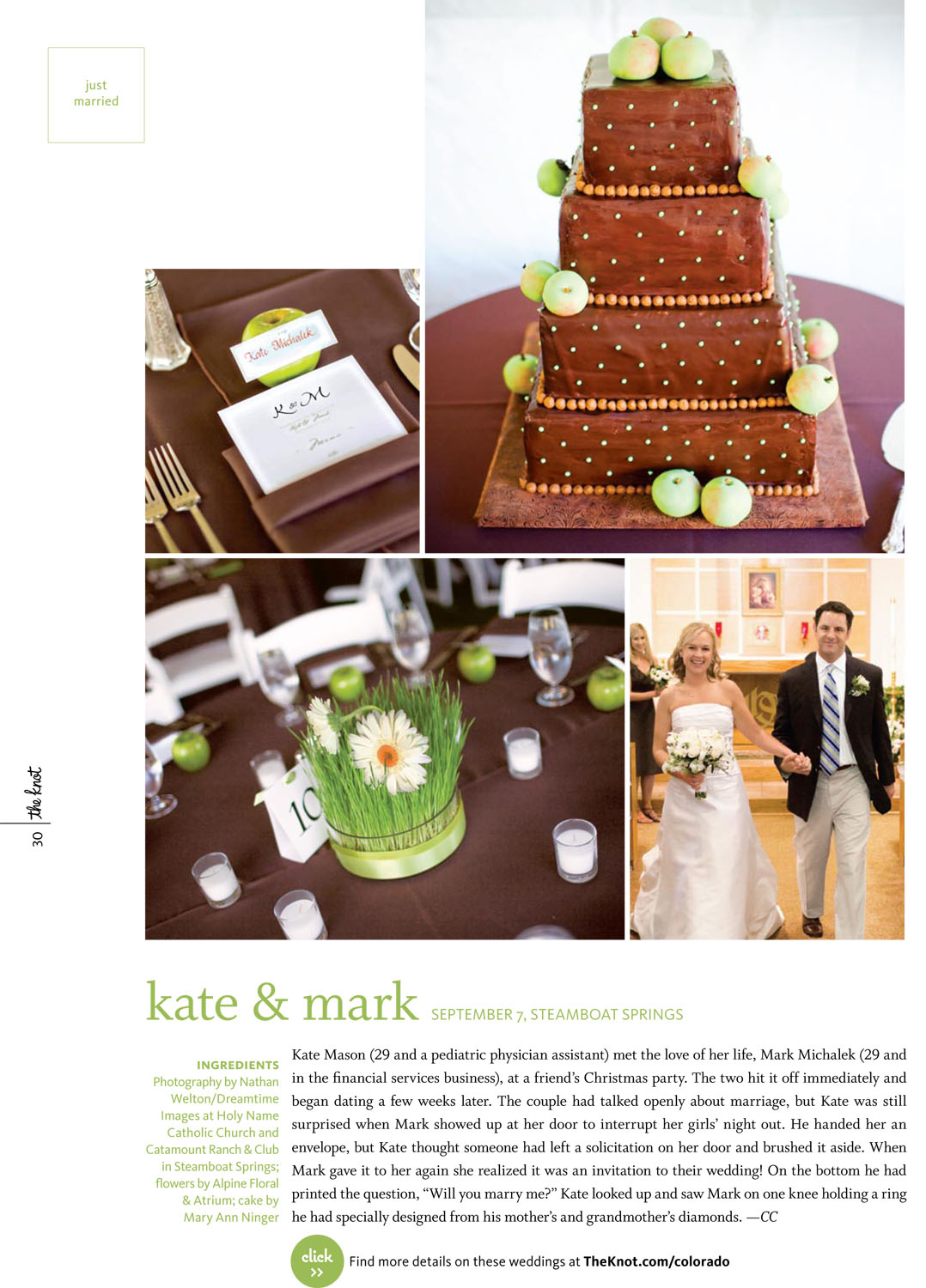 The Knot Awards and Publications | 0 comments Share on FB Tweet me Share on G+ Pin this Buffer me Email this Kate and Mark’s wedding from last summer in Steamboat wound up in the latest issue of The Knot — check it out! Tags: Catamount Ranch and Club , Colorado , Holy Name Catholic Church , Steamboat Springs , Summer , Traditional Submit a Comment Cancel replyYour email address will not be published. Required fields are marked *Comment * Name * Email * Website Save my name, email, and website in this browser for the next time I comment. Δ