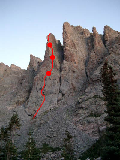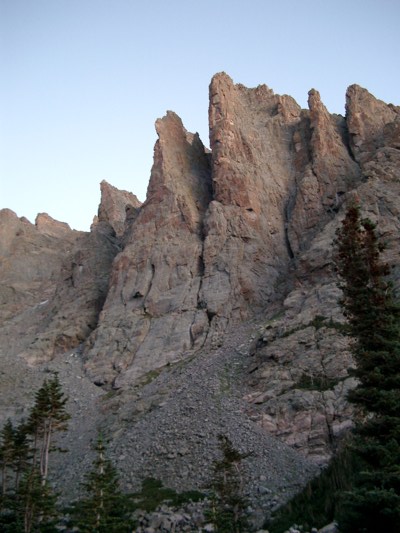 The Petit, in contrast to the two of us, is absolutely not uberdorky. It’s one of the classic climbs in North America, according to a book called, “The 50 Classic Climbs of North America.” Imagine that! You’ll have to excuse the terrible photos I’m going to post — I actually don’t own a modern point-n-shoot, so we dug a 7-year-old relic out of the closet.